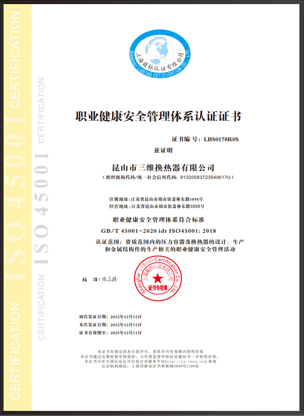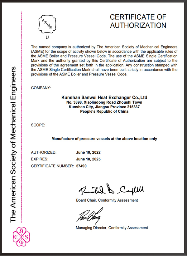 A2壓力容器制造許可證,D1/D2壓力容器設(shè)計許可證;GC2管道安裝許可證;ASME U/NB鋼印;ISO9001、ISO45001、ISO14001體系認證證書等。